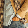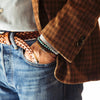 This is Hef, named after the dearly departed Editor-in-Chief of Playboy magazine. It is made of red Tiger Eye beads and a 100% sterling silver Billy Baker Co. logo piece. These stones are said to support motivation and a more active sex drive.