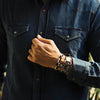 This is GOAT 2 named after the famed Air Jordan basket ball shoe and it's legendary colorway. It is made from an assortment of glass beads from Ghana and a 100% sterling silver Billy Baker Co. logo piece. Pair with GOAT 1 for the ultimate "greatest of all time" inspired stack.