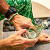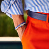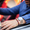 This is Domino, named after the slang term of bones used for the game of dominoes. It is made from ivory bone beads from China and a 100% sterling silver Billy Baker Co. logo piece.