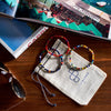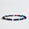 This is Fontelina, named after the Fontelina beach club in Capri, Italy. It is made of blue Lapis Lazuli beads from Afghanistan, a colorful assortment of African Christmas beads and a 100% sterling silver Billy Baker Co. logo piece.