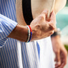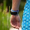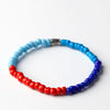 This is Kanye, named after the controversial rapper and his many personalities. It consists of four different colors which can be rotated according to your mood. It is made from hand-beaded small red, light blue, turquoise and cobalt blue glass beads from Africa and a 100% sterling silver Billy Baker Co. logo piece.