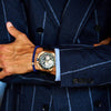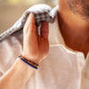 This is Kinsgley, named after the concierge at the Round Hill Hotel located on the blue sea of Montego Bay, Jamaica. It is made from blue matte Lapis Lazuli beads from Afghanistan and a 100% sterling silver Billy Baker Co. logo piece.