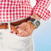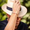 This is Limoncello, named after the Italian lemon liqueur mainly produced in Southern Italy. It is a larger version of our San Marco bracelet and made from a colorful assortment of African Christmas beads and a 100% sterling silver Billy Baker Co. logo piece. These beads were originally made in Venice for trade with Africa but are now mostly made in Ghana.