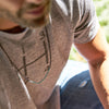 This is Smile, our necklace made of black and turqoise tiny glass seed beads from Afghanistan and a new 100% sterling silver Billy Baker Co. round logo piece. The beads measure 1x2mm and the strand measures approx 30".